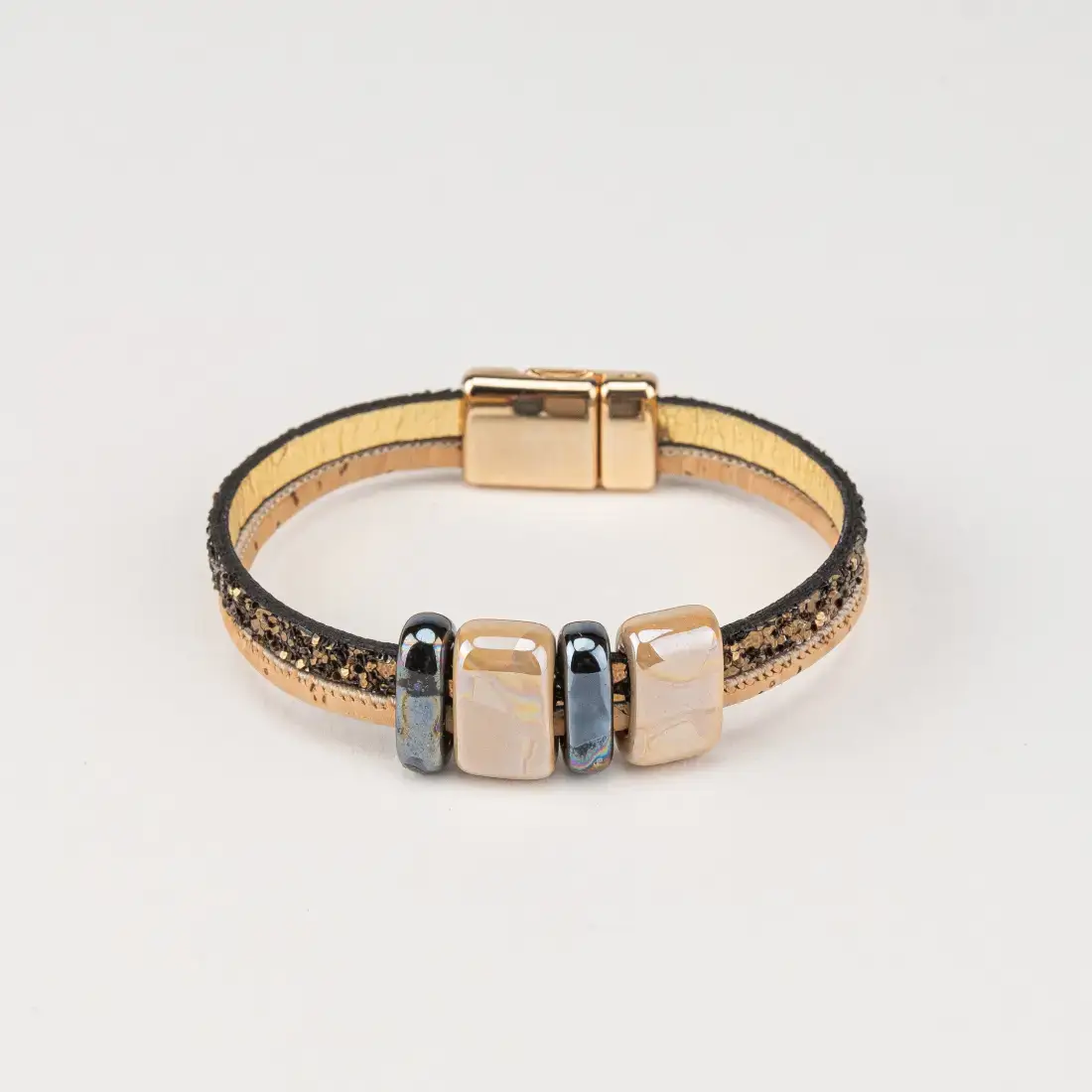 Made with 100% plant-based Portuguese cork, this bracelet is lightweight, durable, eco-friendly, and vegan—ideal for those looking for a sustainable accessory that combines subtle shine and authenticity.