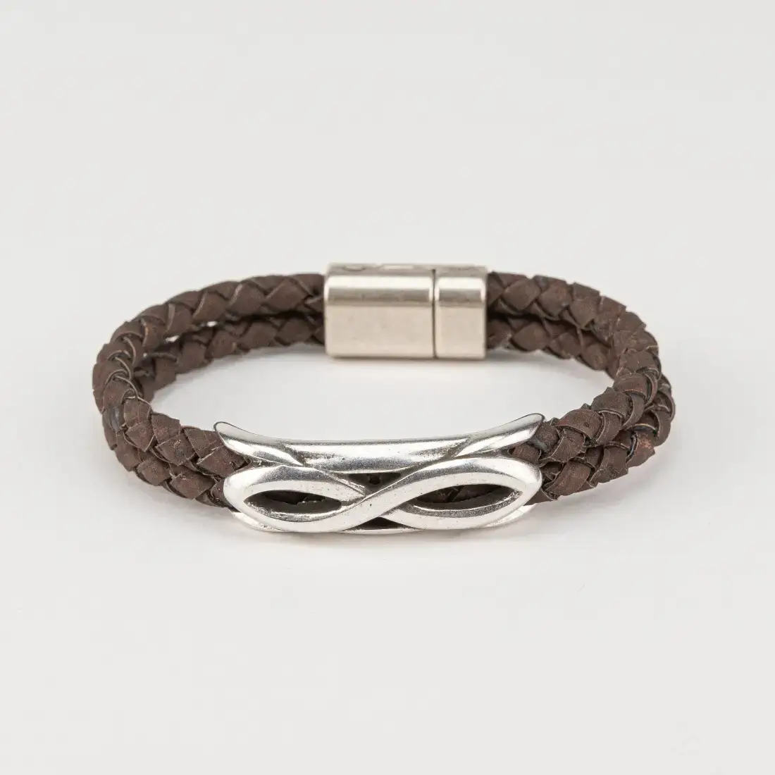 Bracelet with two turns and a metal piece in the shape of an infinity.