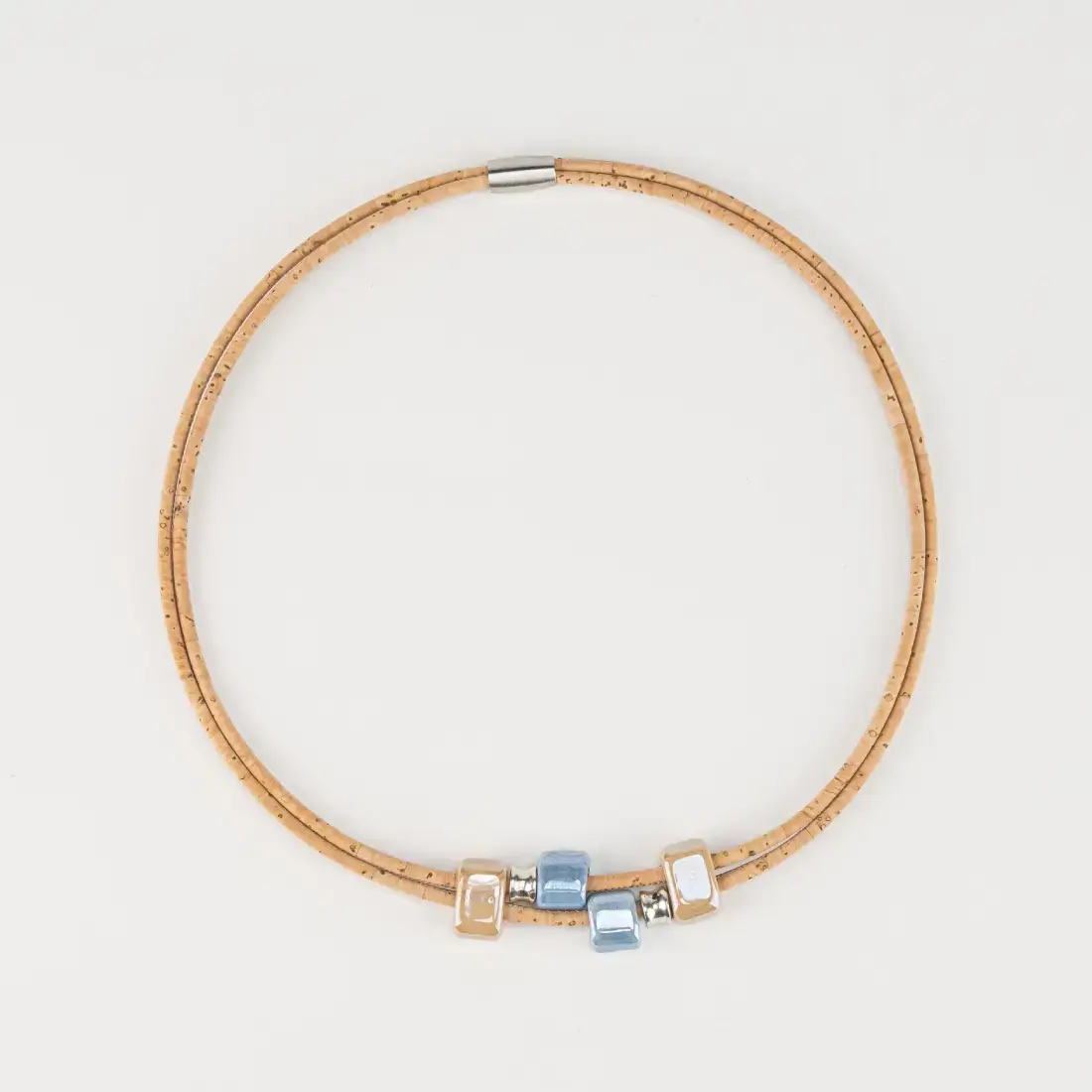 This handmade necklace is made from natural Portuguese cork, an eco-friendly, lightweight, and durable material.