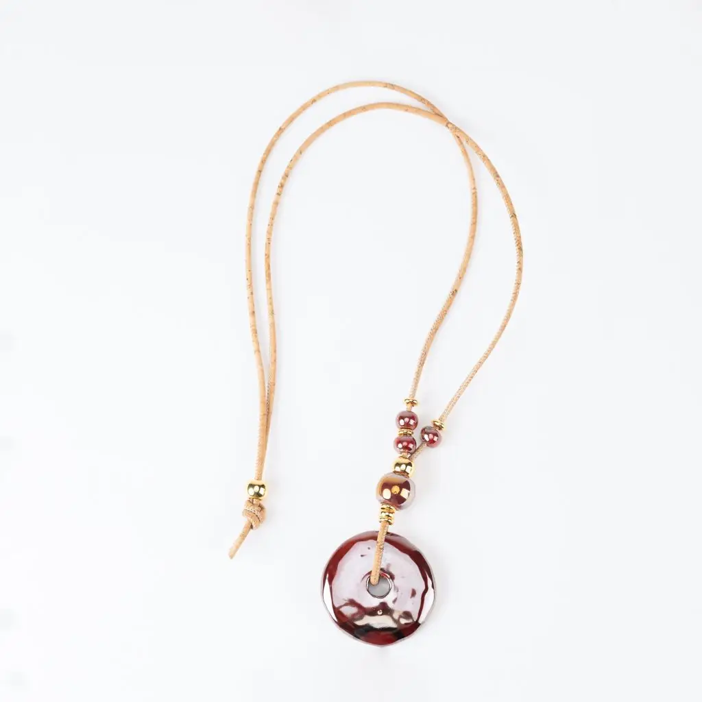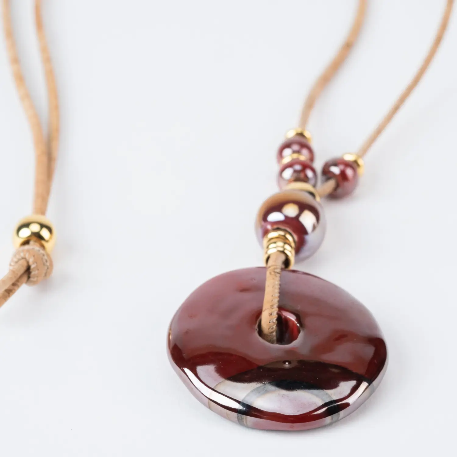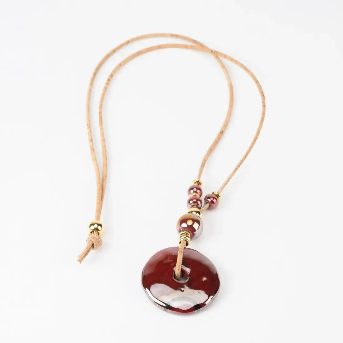 Colar em cortiça com cerâmica redonda grande e pequenas peças
